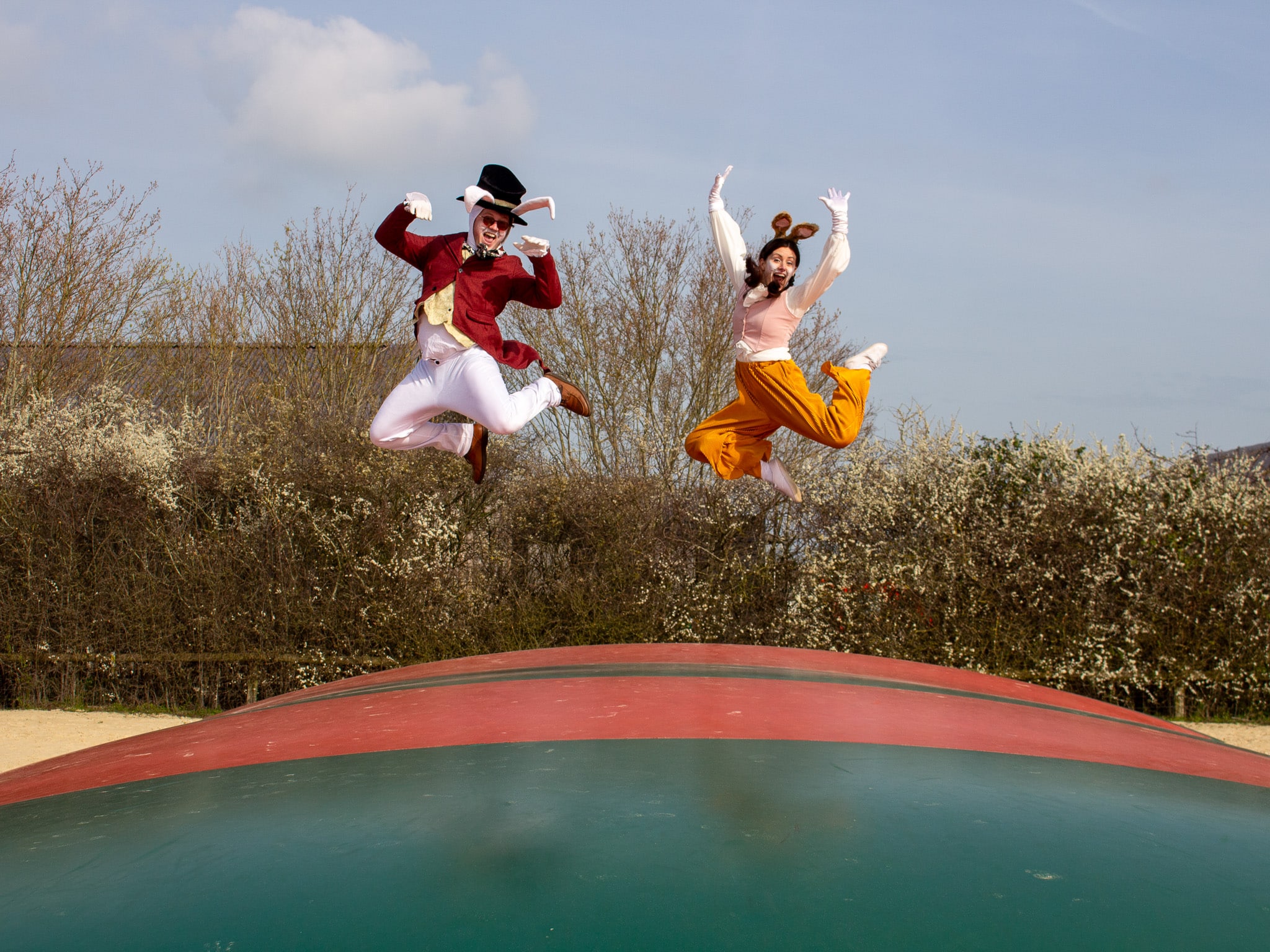 Jump higher and higher on our two GIANT bouncy pillows.